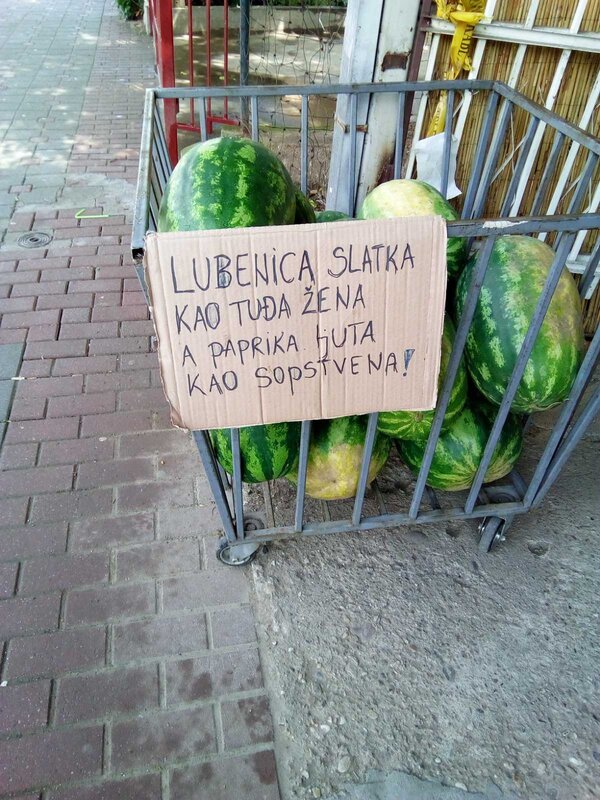 | Lubenica slatka kao tuđa žena, a paprika ljuta kao sopstvena |